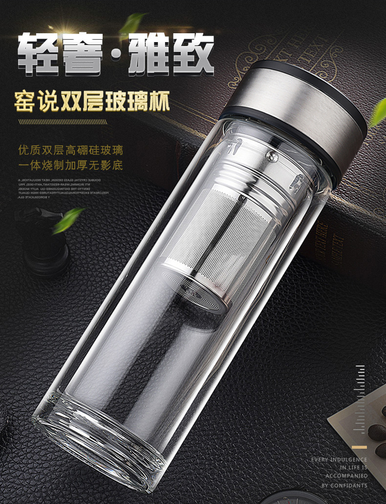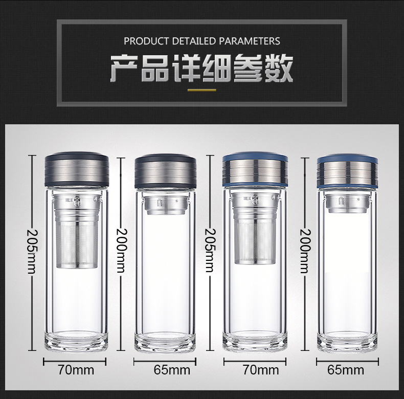 雙層水晶玻璃杯辦公家用泡茶杯耐熱加厚禮品杯子定制刻字印字LOGO