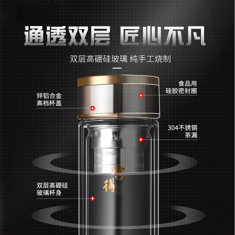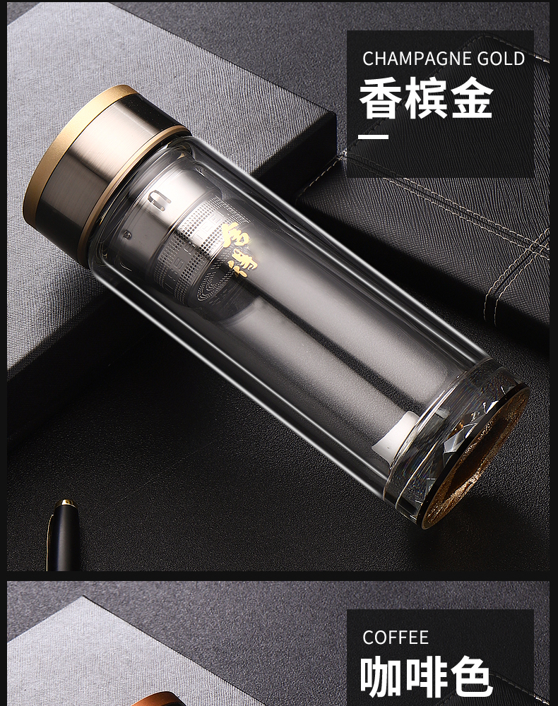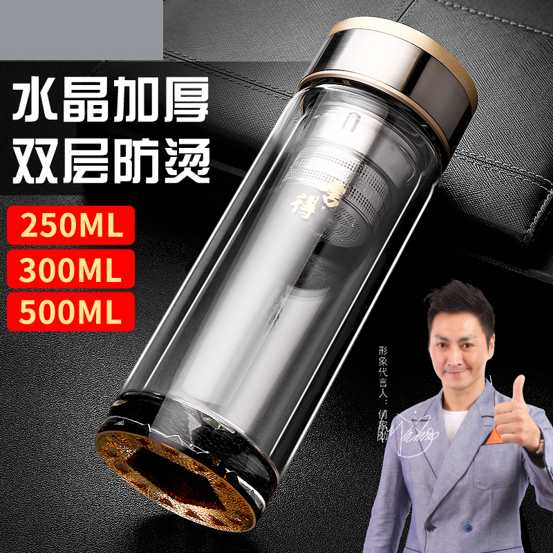 雙層加厚高檔玻璃杯男泡茶杯辦公車載耐高溫茶水杯子禮品定制