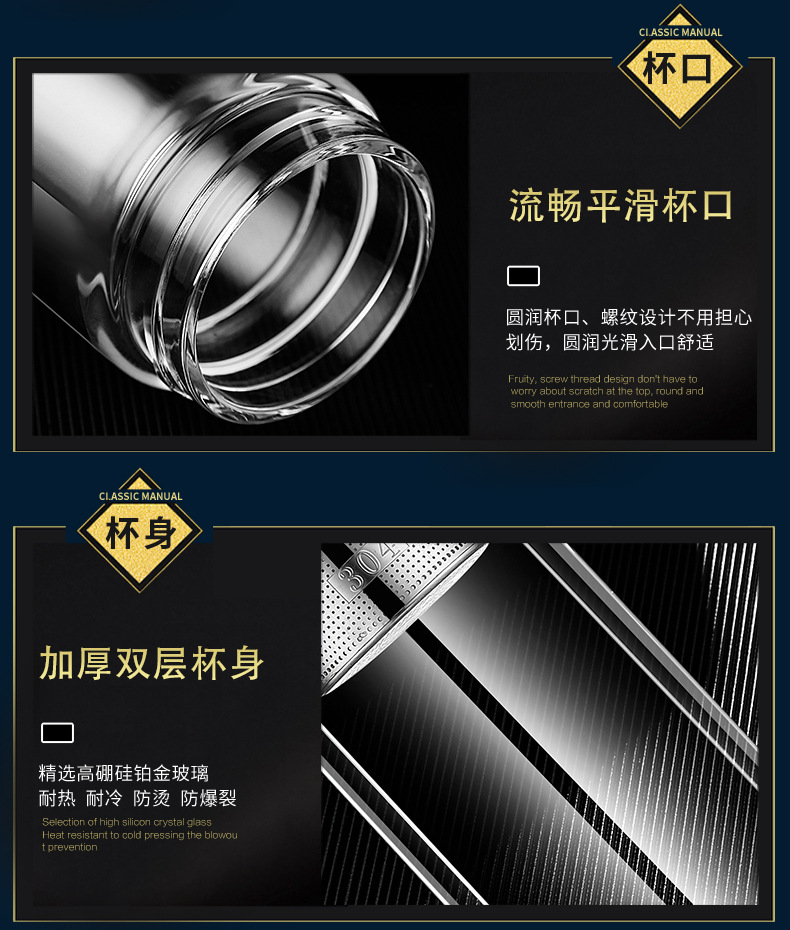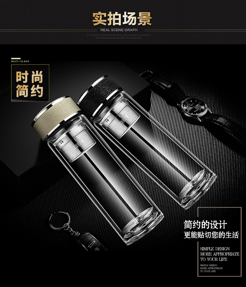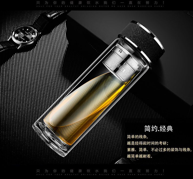 廠家直銷新款創意高端商務雙層玻璃杯帶濾網辦公水杯定制
