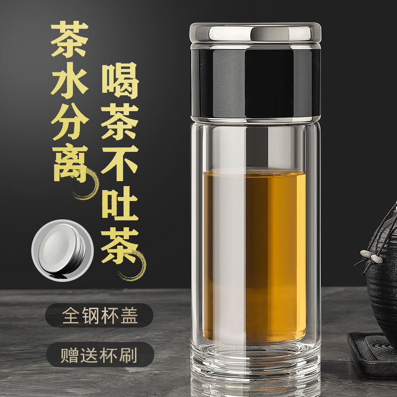 智能顯示雙層茶水分離玻璃杯