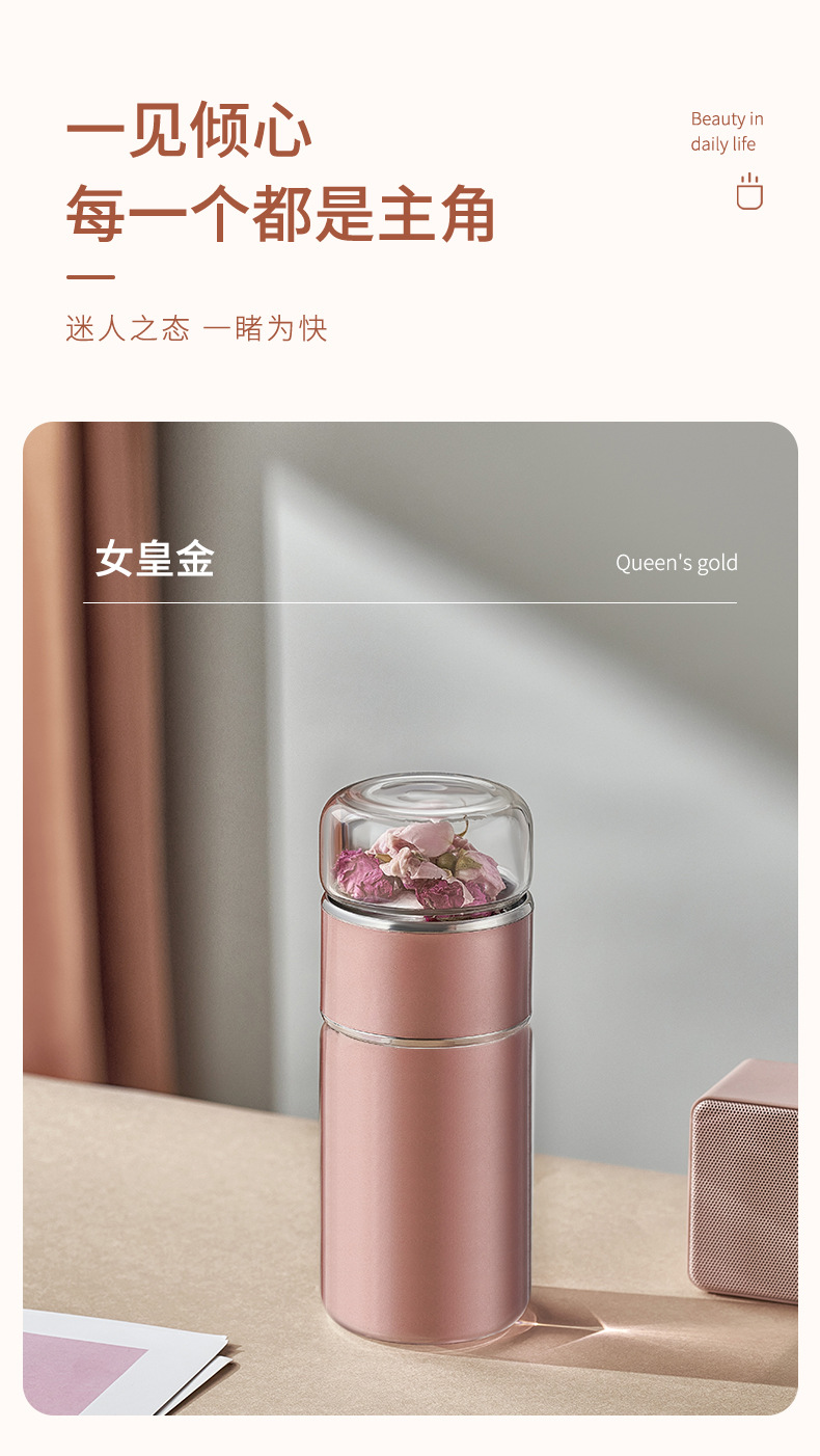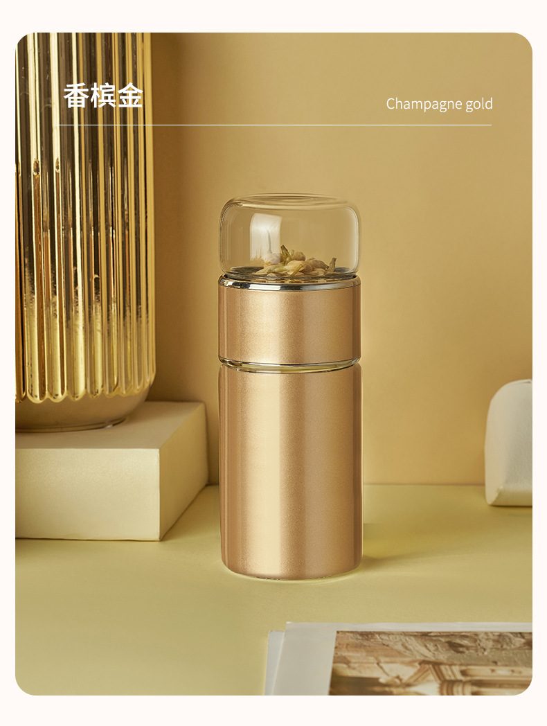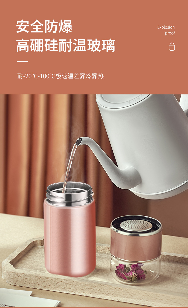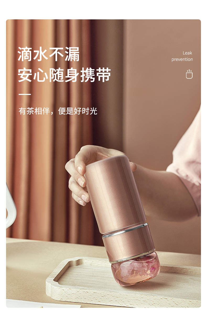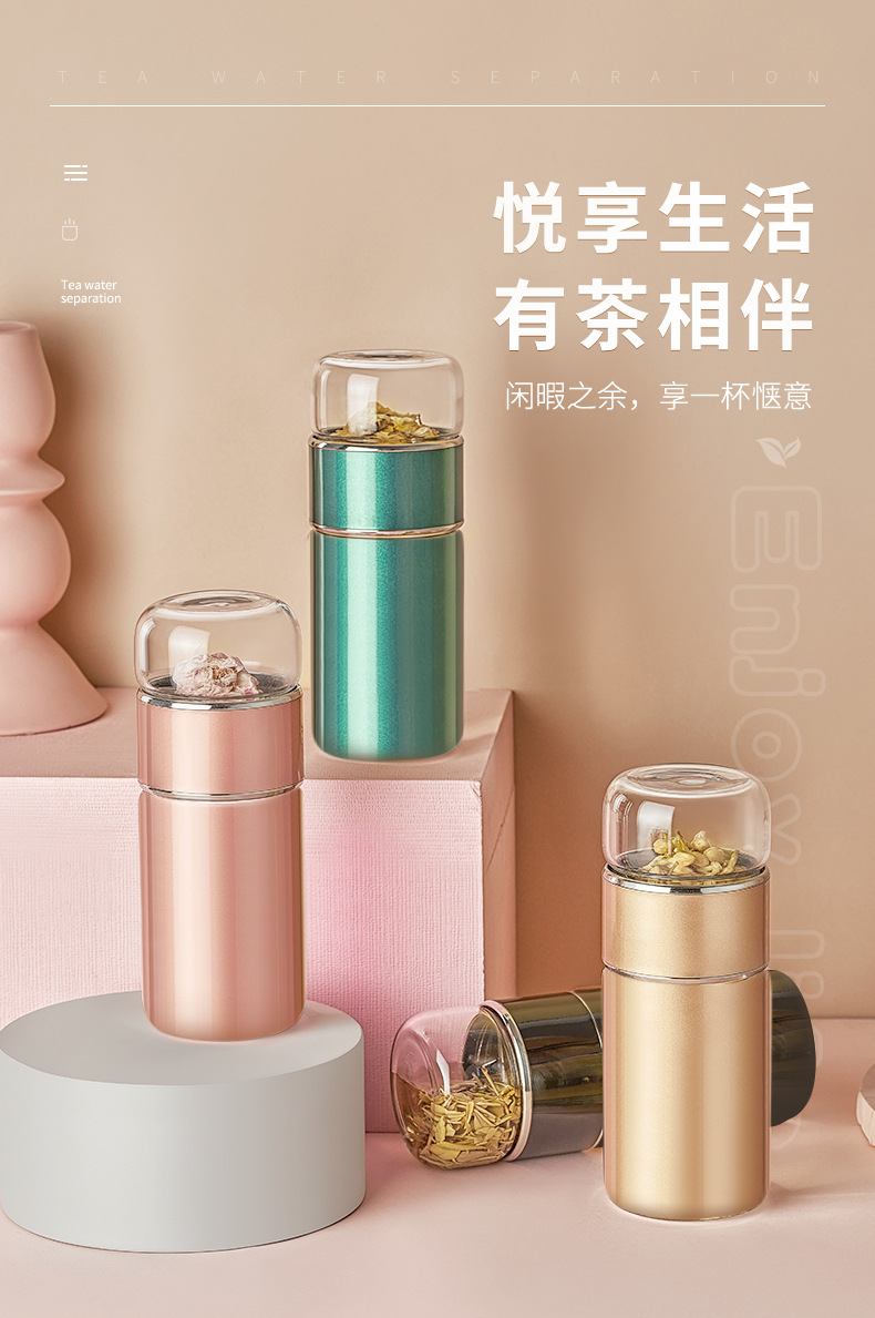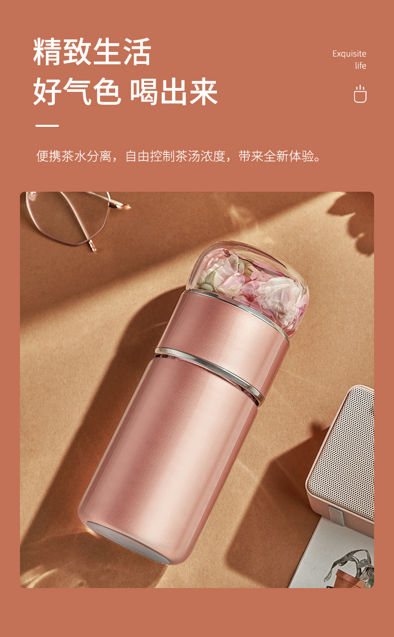 茶水分離泡茶杯子 便攜簡(jiǎn)約雙層玻璃不銹鋼保溫杯花茶過(guò)濾隨性杯
