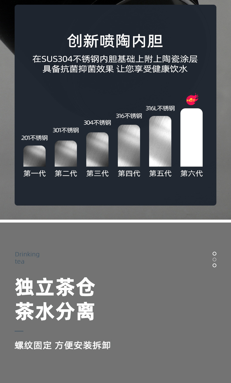 不銹鋼茶水分離杯泡茶杯噴陶內膽保溫杯 商務男士禮品水杯子500ml