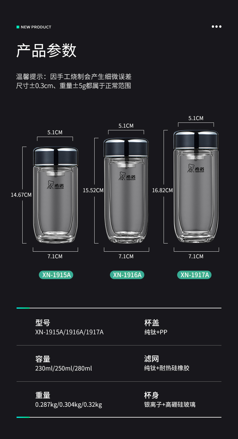 希諾雙層抗菌玻璃杯隔熱男女士高檔車載水杯便攜杯子帶濾網(wǎng)茶杯
