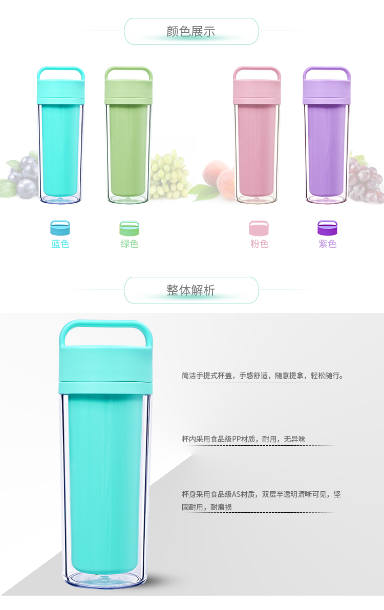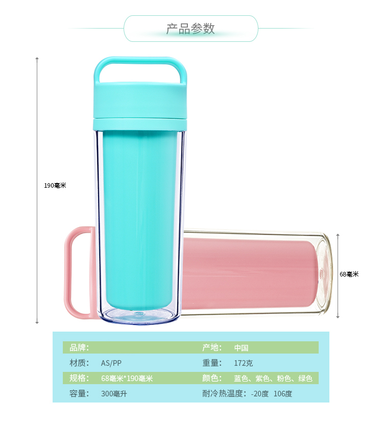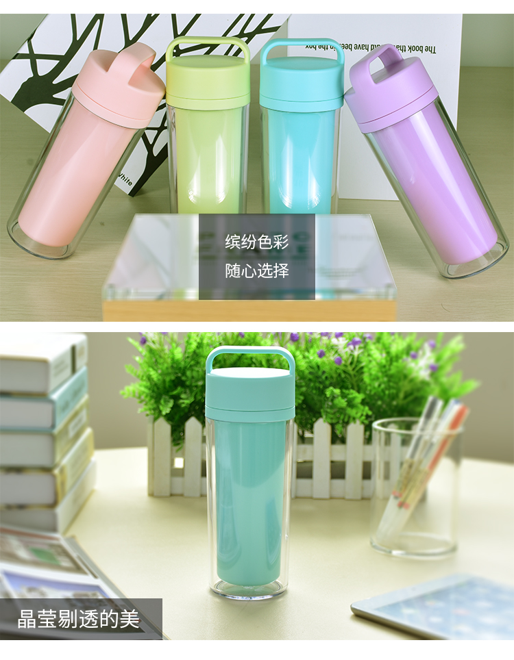 運(yùn)動(dòng)水杯 便攜防漏隨手杯 學(xué)生杯子 情侶創(chuàng)意水杯子 雙層塑料杯子 300ml