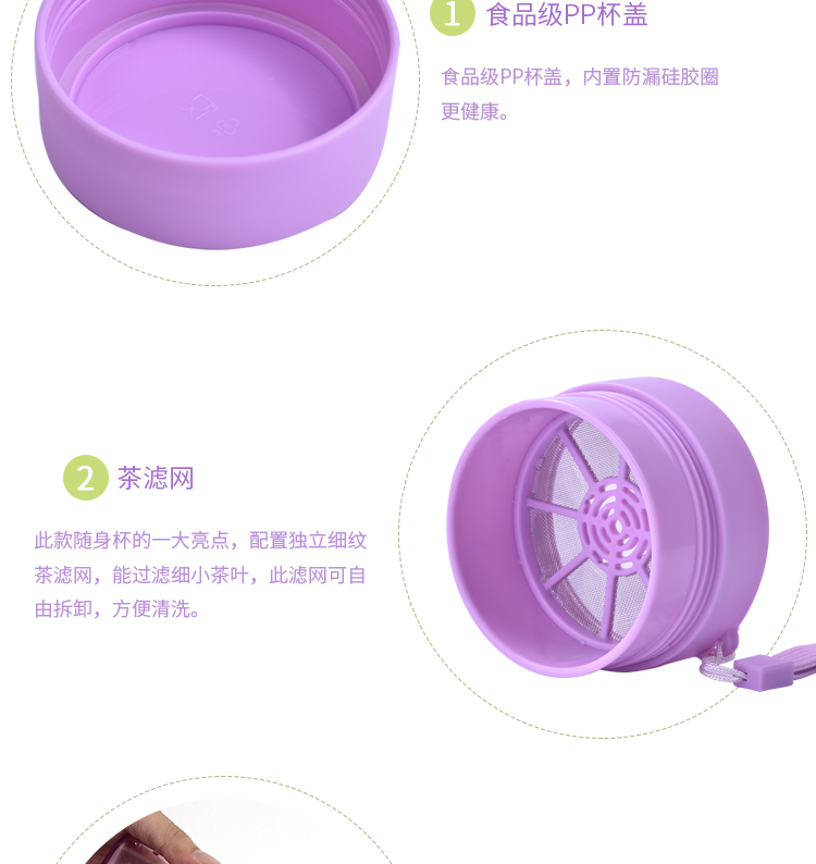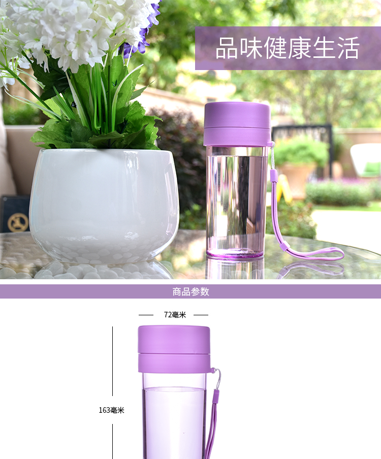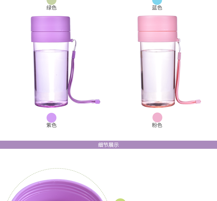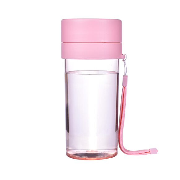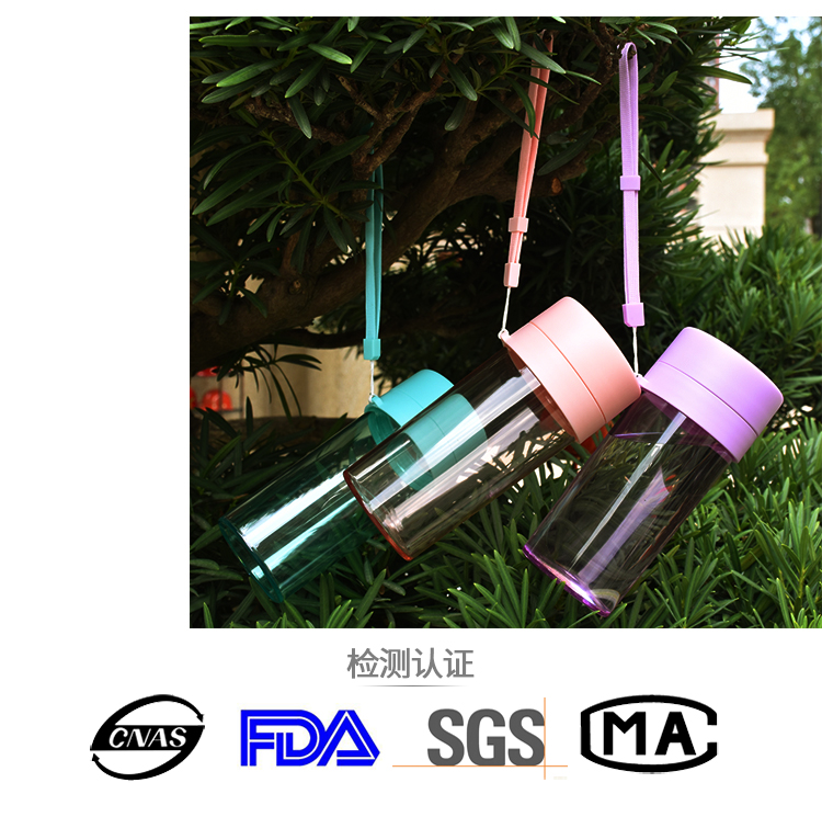 塑料杯子防漏 學(xué)生水杯帶茶隔 運動水杯trian材質(zhì) 隨身杯帶提繩360ml
