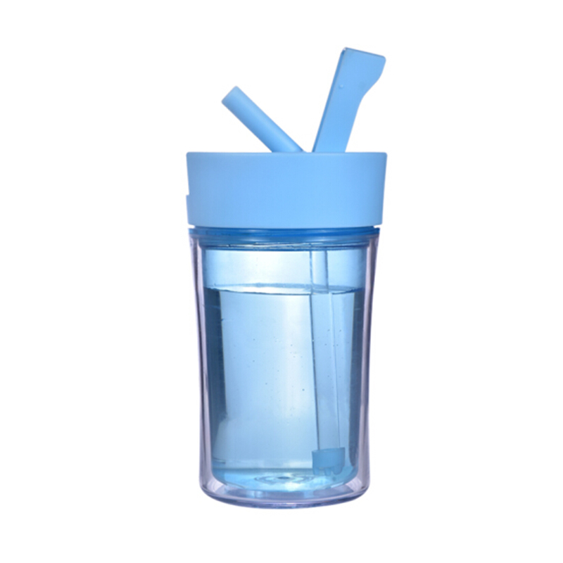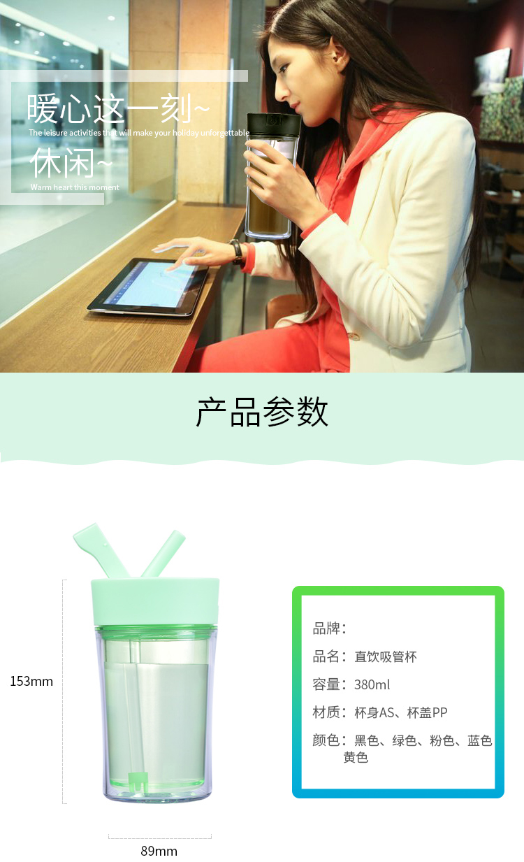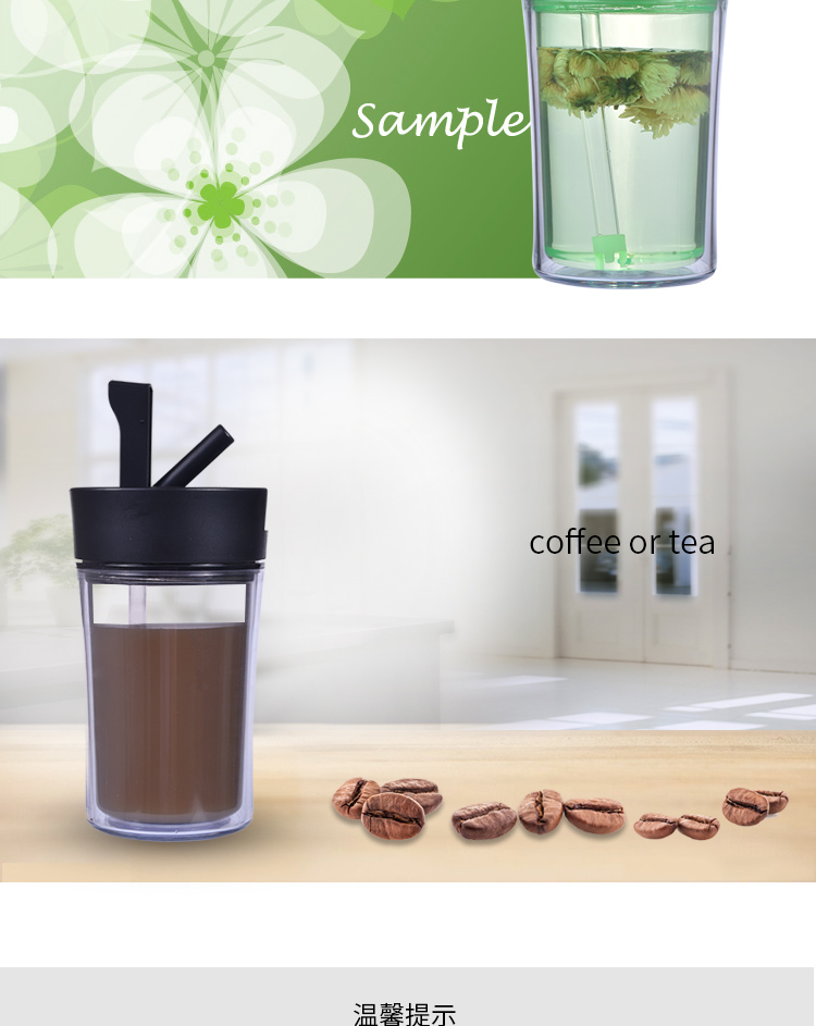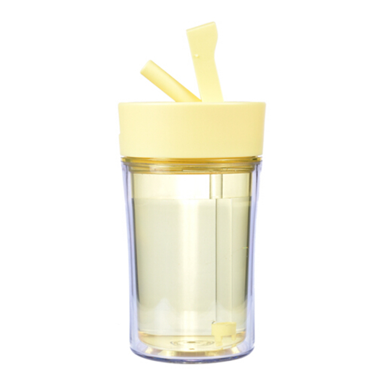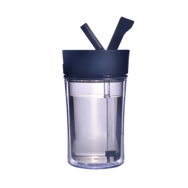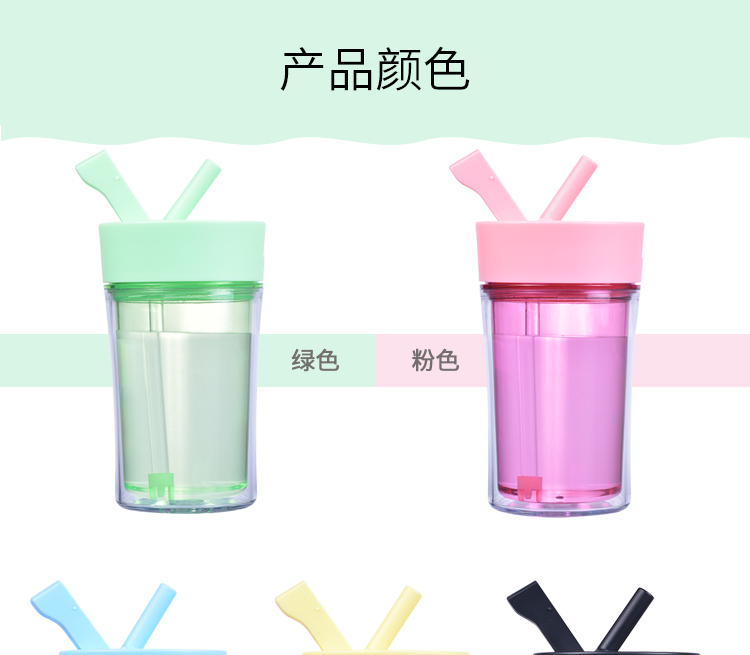 情侶咖啡杯創意水杯 辦公水杯 咖啡杯子 雙層塑料杯子 隨手杯 吸管杯