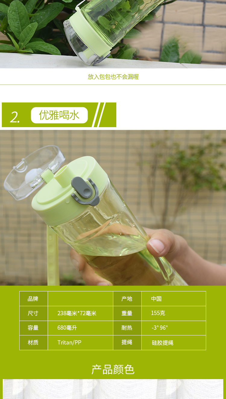 大容量戶外運動水壺 塑料杯子 隨手杯帶茶隔 便攜水杯tritan 太空杯 680ml